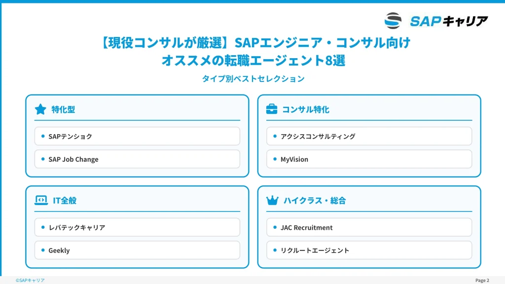 そこでこの記事では、現役コンサルの視点から厳選した、SAP転職に本当に強いエージェントを紹介します。