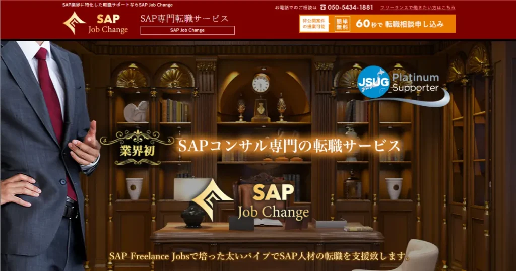 SAP Job Changeは、JSUG(ジャパンSAPユーザーグループ)のサポーター企業が運営する、SAP特化の転職支援サービスです。